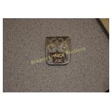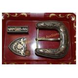 FEATURING: MARKER MARKED SPURS AND BITS, NEW SADDLES; VINTAGE SADDLES; COINS AND CURRENCY; SADDLE PADS; NATIVE AMERICAN ARTWORK; NATIVE AMERICAN ARTIFACTS; BRONZES; GREAT FIREARMS; HORSE TACK; JEWELRY; BELT BUCKLES PLUS MUCH MORE 1 PCGS GRADED MS69 2017 FIRST STRIKE SILVER EAGLE FEATURING DONALD TRUMP (ALL PROCEEDS TO BENEFIT CROCKETT FAMILY) 2 GROUP OF 4 CONTEMPORARY BROTHEL TOKENS. (ALL PROCEEDS TO BENEFIT CROCKETT FAMILY) 3 LADIES STERLING SILVER HOOP EARRINGS (ALL PROCEEDS GO TO BENEFIT CROCKETT FAMILY) 3 CUSTOM MADE STERLING SILVER WITH COPPER OVERLAY MONEY CLIP WITH WRCA 2016 MADE BY RANDY BUTTERS. (ALL PROCEEDS TO BENEFIT CROCKETT FAMILY) 3 US 2011 PROOF "MEDAL OF HONOR" COMMEMORATIVE SILVER COIN. (ALL PROCEEDS TO BENEFIT CROCKETT FAMILY) 4 SINGLE MOUNTED BOB BLACKWOOD STEERHEAD SPURS WITH BONA ALLEN SPUR STRAPS. (SPUR STAND NOT INCLUDED) 7 NEW COLT MODEL 1873 SAA 3RD GENERATION CAL. 357 MAG, 6 ROUND SINGLE ACTION REVOLVER. MFG. 1980 WITH BOX. SER# SA14861. INV. D193. (NICS SCHECK REQUIRED. WE DO NOT SHIP FIRARMS OUT OF THE COUNTRY OR TO CALIFORNIA) 9 FRAMED 23" X 19" NATIVE AMERICAN OIL ON CANVAS BY TED HOGSETT, CA. 1981 12 ENGRAVED WESTERN BIT MADE BY SLIESTER OF SANGER, CA. 13 FRAMED 8" X 10" ARTIST SIGNED CALVERT TATE NEVAQUAYA TITLED, "OKLAHOMA WAR DANCERS" 14 GROUP OF 20 OSTRICH LEATHER, ALIGATOR, SNAKE AND LEATHER ETC MONEY CLIPS. 15 SINGLE MOUNTED 2011 RIGGS HOLIDAY CLASSIC BULL RIDING TROPHY SPURS. 16 SINGLE MOUNTED CARD SUIT WESTERN SPURS BY RF FORD OF SAN ANGELO, TX #372. 19 USED COLT HUNTSMAN CAL. 22LR SEMI AUTO PISTOL WITH 10 ROUND MAG, MFG 1956. SER# 93805. INV. D88. (NICS SCHECK REQUIRED. WE DO NOT SHIP FIRARMS OUT OF THE COUNTRY OR TO CALIFORNIA) 20 FRAMED 25" X 14" PUBLIC SALE AUCTION SIGN DATED NOVEMBER 23, 1887 AUCTIONING 3 YEAR OLD "MOHAWK MARE" WITH PICTURE. 24 GROUP OF 25 NATIVE AMERICAN ARROWHEADS FOUND IN EAST TEXAS IN DISPLAY CASE 24 MEN'S VOGT 3" STERLING SILVER AND 10K GOLD BELT BUCKLE 24 GROUP OF 5 SERIES 1957 $1.00 SILVER CERTIFICATES WITH CONSECUTIVE SERIAL NUMBERS IN UNCIRCULATED CONDITION 24 ANTIQUE FRED MUELLER SADDLE AND HARNESS CO. OF DENVER CO. PRINTING PLATE 24 ADVERTISING PIECE FROM GATEWAY MOTORS INC. IN CARLSBAD, NM 26 GROUP OF 2 WESTERN BITS. ONE KELLY LEAF PATTERN AND ONE KELLY STYLE GLOBE BIT 28 UNMARKED DOUBLE MOUNTED WITH NICKEL AND COPPER OVERLAY WESTERN SPURS. (SPUR STAND NOT INCLUDED) 29 FRAMED 21" x 16" NATIVE AMERICAN PRINT BY AMOS BEAVER, CIRCA. 1977 31 FRAMED 20" X 14" NATIVE AMERICAN PRINT TITLED "PRAYER TO THE BUFFALO" BY DOC TATE NEVAQUAYA 32 FRAMED 23" X 18" NATIVE AMERICAN CHARCOAL DRAWING BY DAVID JONAS, CIRCA 1979 33 USED WINCHESTER MODEL 94AE CAL. 357 MAG, 9ROUND, LEVERACTION CARBINE. SER# 6241487. INV. D185. (NICS SCHECK REQUIRED. WE DO NOT SHIP FIRARMS OUT OF THE COUNTRY OR TO CALIFORNIA) 40 GROUP OF 7 NATIVE AMERICAN ARTIFACTS FOUND IN ' STERLING AND TOM GREEN COUNTY IN DISPLAY BOX. 41 FRAMED 20" X 20" LTD ED ARTIST SIGNED NATIVE AMERICAN PRINT 42 US 1826 LARGE SIZE PENNY, 1865 2 CENT PIECE AND 1866 3 CENT PIECE. 46 US 1900-P, 1921-9, 1883-O AND 1884-O MORGAN SILVER DOLLARS, AU QUALITY. 49 US 1923 MONROE DOCTRINE COMMEMORATIVE SILVER HALF DOLLAR. 50 US 1880-P, 1880-O, 1896-P AND 1921-P MORGAN SILVER DOLLARS, ALL ARE AU QUALITY. 51 US 2014 BASEBALL HALL OF FAME COMMEMORATIVE CLAD HALF DOLLAR. 52 FRAMED 20" X 30" LIMITED EDITION ARTIST SIGNED PRINT "TALE OF THE UNDER BAND" BY JEFF YELLOWHAIR, NATIVE AMERICAN APACHE FROM APACHE OKLAHOMA. 54 FRAMED 20" X 16" CONTEMPORARY WYATT EARP GOLD CLAIM CERTIFICATE WITH PICTURES. 55 FRAMED 6" X 4" ARTIST SIGNED LIMITED EDITION #2/200 "SADDLE HORSE AND RIDER" BY SUSAN HEDSTRAND. 58 FRAMED 21" X 27" MOVIE POSTER "THE ROUNDERS" STARRING GLEN FORD AND HENRY FONDA. 59 FRAMED 35" X 13" MOVIE BILL "MAIL ORDER BRIDE" STARRING BUDDY EBSEN. 61 RL'S HAT RACK BY THE LATE L D BURKE OF SANTA FE NEW MEXICO. 63 COAT RACK READING "RIDE TALL HE'S ALWAYS WATCHING" BY THE LATE L D BURKE OF SANTA FE NEW MEXICO. 65 FRAMED 7" X 33" PICTURE OF COLTON CALIFORNIAS RODEO ENTRY PHOTO CIRCA 1929. 68 MOUNTED STEERHEAD MEASURING 38" POINT TO POINT ON HORNS IN VERY GOOD CONDITION. 70 MOONSHINE STILL FROM LAS VEGS NEW MEXICO MEASURING 13" TALL. 71 FRAMED 21" X 31" " BUFFALO BILLS WILD WEST SHOW" SHOW POSTER. 74 MAKER MARKED HEISER STUDDED BRIDLE WITH COLORADO BIT AND SPUR MARKED BIT 76 PAIR OF VINTAGE IRON SPURS WITH SPUR STRAPS (SPUR STAND NOT INCLUDED) 78 NEW COLT MODEL 1873 SAA 3RD GENERATION CAL. 357 MAG, 6 ROUND, SINGLE ACTION REVOLVER WITH BOX. SER# 84125SA. INV. D192. (NICS SCHECK REQUIRED. WE DO NOT SHIP FIRARMS OUT OF THE COUNTRY OR TO CALIFORNIA) 79 VINTAGE MEXICAN SADDLE WITH SOMBRERO, GLOVES AND RAWHIDE ROPE. 81 HIGH QUALITY TOOLED LEATHER MEXICAN SADDLE WITH 14" SEAT. 83 NEW DAKOTA TOOLED LEATHER SADDLE WITH 17" HIGH BACK SEAT. MADE IN USA 84 NEW CHILDREN'S TOOLED LEATHER SADDLE WITH 12" PADDED SEAT. MADE IN USA 85 NEW TOOLED LEATHER SADDLE WITH 16" PADDED SEAT. MADE IN USA 86 NEW NASH LEATHER SADDLE WITH 14" PADDED SEAT. MADE IN USA 87 88 NEW TOOLED LEATHER COURTS SADDLERY CO. DEE PICKETT ROPING SADDLE WITH 17" PADDED SEAT. MADE IN USA. 89 NEW TOOLED LEATHER BARRELL RACER SADDLE BY FRONTIER SADDLERY WITH 14" PADDED SEAT. MADE IN USA 90 NEW FRONTIER SADDLERY TOOLED LEATHER WESTERN SADDLE WITH 15" SEAT. MADE IN USA 91 NEW FRONTIER SADDLERY TOOLED LEATHER SADDLE WITH 16" PADDED SEAT. 95 US 1946 "BOOKER T WASHINGTON" COMMEMORATIVE HALF DOLLAR. 96 US 1921-D, 1882-S AND 2-1921-P MORGAN SILVER DOLLARS, AU QUALITY. 98 US 1890-P, 1882-O, 1884-O AND 1921-D MORGAN SILVER DOLLARS, AU QUALITY. 100 GROUP OF 3 US 1921-P MORGAN SILVER DOLLARS AND 1 1921-D, AU QUALITY. 105 GROUP OF 2 PAIR OF NEW LEATHER CHAPS. ONE LARGE AND ONE SMALL. 106 GROUP OF 2 WESTERN BITS. ONE BUERMAN RISING BIRD BIT AND ONE COLORADO SADDLERY BIT. 108 PAIR OF SINGLE MOUNTED RF FORD OF SAN ANGELO, TX. #1173 WESTERN SPURS WITH LIZ FORD SPUR STRAPS 109 GROUP OF 20 OSTRICH, ALIGATOR, SNAKE SKIN AND LEATHER MONEY CLIPS 110 GROUP OF 2 WESTERN SADDLE R