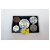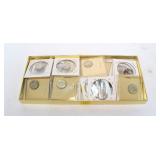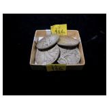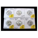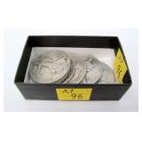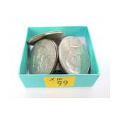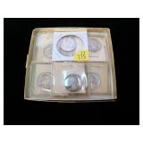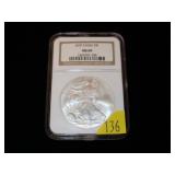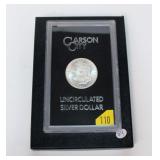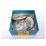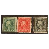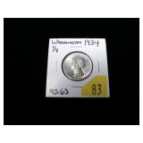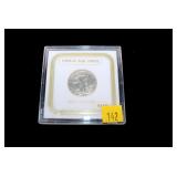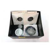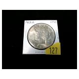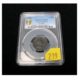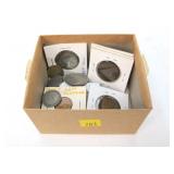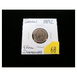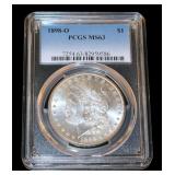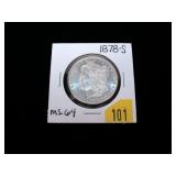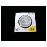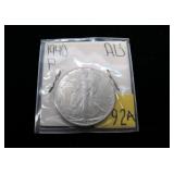 Coins * Stamps * Jewlery * US Gold * BU Silver Dollars * Type Coins * US & Foreign Paper Money * Jewelry * Diamonds * Early US * Great Britain Canada & Foreign Stamps & Covers * US Officials 1 14K White gold oval cut tanzanite (3.10 ct) and diamond (0.42 ct.) ring with video box and appraisal certificate insurance replacement value of $7,727.00 2 14K White gold trapezoid cut tanzanite (0.60 ct.) and diamond ring with appraisal certificate insurance replacement value of $2,462.00 3 14K Yellow gold oval cut blue sapphire earrings (5.50 ct.) with white sapphire accent and appraisal certificate insurance replacement value of $1,069.00 4 14K White gold oval cut natural ruby (10.30 ct.) earrings with diamond accent and appraisal certificate insurance replacement value of $2,344.00 5 14K Yellow gold round brilliant cut black diamond (2.40 ct.) stud earrings with appraisal certificate insurance replacement value of $1,470.00 6 14K White gold diamond (0.16 ct.) pendant with 52 diamond accents and appraisal certificate insurance replacement value of $896.00 7 14K Yellow gold round brilliant cut diamond (0.30 ct.) stud earrings with appraisal certificate retail value of $420.00 8 14K Yellow gold hoop earrings with bezel set brilliant cut drop diamond (0.40 ct.) accents and an appraisal certificate insurance replacement value of $1,500.00 9 14K Yellow gold marquis cut diamond solitaire, approx. 33 pts. 10 14K Yellow gold round brilliant cut diamond solitaire, approx. 20 pts. 11 14K White gold square brilliant cut blue diamond (0.34) ring with white diamond accents and appraisal certificate insurance replacement value of $1,119.00 12 14K White gold diamond band (0.25 ct.) with appraisal certificate insurance replacement value of $1,455.00 13 14K White gold oval bezel set natural sapphire pendant (9.10 ct.) with diamond accent and appraisal certificate insurance replacement value of $738.00 15 14K White gold orange sapphire (2.90 ct.) floral pendant with center diamond accent on 14K white gold chain with appraisal certificate insurance replacement value of $2,450.00 16 14K Yellow gold three-stone trillion cut citrine pendant (6.60 ct.) with appraisal certificate insurance replacement value of $588.00 17 14K Yellow gold chandelier style lever back teardrop shaped beehive cut natural mult-colored sapphire earrings (3.70 ct.) with appraisal certificate insurance replacement value of $1,015.00 18 14K Yellow gold square cut bezel set black diamond (2.50 ct.) shepherd hook earrings with appraisal certificate insurance replacement value of $2,126.00 19 14K Yellow gold briollet cut blue topaz (15.00 ct.) shepherd hook drop earrings with appraisal certificate insurance replacement value of $770.00 20 10K Yellow gold modified rectangle amethyst (1.05 ct.) hook earrings with diamond accent and appraisal certificate insurance replacement value of $590.00 21 14K White gold oval cut ruby (0.60 ct.) and diamond pendant on 14K white gold chain with an estimated insurance replacement value of $630.00 22 14K White gold bezel set cushion cut aquamarine pendant (3.15 ct.) with appraisal certificate insurance replacement value of $938.00 23 14K White gold chandelier style briollet cut pink tourmaline (7.00 t.) earrings with appraisal certificate retail value of $525.00 24 14K Yellow gold multi-colored bezel set sapphire (2.50 ct.) hoop earrings with appraisal certificate insurance replacement value of $1,040.00 25 Sterling silver swirl style claw and bead set black diamond and white diamond pendant on sterling silver chain with an appraisal certificate insurance replacement value of $506.00 26 Sterling silver pave diamond ring (0.38 ct.) with appraisal certificate insurance replacement value of $584.00 27 Sterling silver blue diamond and white diamond cross over band with appraisal certificate insurance replacement value of $872.00 28 Sterling silver modern design pendant with diamond accents 29 Sterling silver channel and bead set blue sapphire bracelet with appraisal certificate insurance replacement value of $1,388.00 30 Sterling silver diamond links necklace (0.20 ct.) with appraisal certificate insurance replacement value of $909 31 Sterling silver sapphire, ruby and emerald bracelet with appraisal certificate retail value of $600 32 Citizen Perpetual Chronograph black dial two-tone men's watch with sapphire crystal 33 46" 8-9mm Freshwater pearl necklace with matching 9-10mm post earrings 34 16" 8-10mm Pink freshwater pearl necklace with matching 7-9mm 7" bracelet 35 7" 8-10mm Baroque yellow freshwater pearl bracelet with matching drop earrings 36 32" 7-8mm Black freshwater pearl necklace with matching 7-9mm 7" bracelet 37 7" 8-11mm Iridescent freshwater pearl bracelet with matching 6-7mm post earrrings 38 Lot, costume jewelry, pins and brooches, including Weiss, 10 pcs. 39 3- Sterling silver rings: turquoise claddagh size 6, horse size 7, belt buckle size 9 44 Lot, men's and women's costume jewelry and watches 85 6- BU Washington quarters: 1952, 1952-D, 1953, 1953-D, 1954-S, 1955 89 5- Standing Liberty quarter dollars: 1925, 1926, 1927, 1928, 1930 92 45- Complete set of Walking Liberty half dollars: 1916-1940-S (Including 1916, 1916-D, 1916-S, 1921, 1921-S and 1921-D) 93 95 Complete set of Kennedy half dollars: 1964-1977 with proofs, 31 pcs. 106 1882-CC GSA Morgan dollar, government slab certified gem BU 108 1883-CC GSA Morgan dollar, government slab certified gem BU 110 1884-CC GSA Morgan dollar, government slab certified gem BU 130 1924 $20 Gold Saint-Gaudens Double Eagle, NGC slab certified MS-62 131 1927 $20 Gold Saint-Gaudens Double Eagle, PCGS slab certified MS-64 134 139 10- Morgan silver dollars: 1880-O, 1885, 2-1889, 1899-S, 3-1921, 2-1921-D 146 151 166 6- Seated Liberty dimes: 1839-O, 1845, 1853, 1877-CC, 1890, 1891-O 167 Lot, U.S. type coins: 1849 half dime, 1857 half dime, 2- 1868 three-cent nickel 167 3- U.S. type coins: half dime, three-cent silver and Seated Liberty dime 168 Lot, eight Liberty and Shi