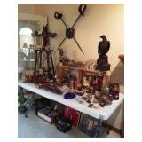 Items scheduled for sale will include a Grandmother clock and working vintage mantle clocks, Stein collection, Alaskan collectibles, Vintage Panasonic and Sony working tabletop radios and Realistic Modulaire 8 track stereo with floor speakers, Toshiba 55" TV, Vizio 26" TV, Vintage albums and 8 track tapes, Variety of end tables and stands, S Bent Bros large wooden rocker, Oak corner lighted curio cabinet, Duncan Phyfe style corner cabinet, Inlaid checkerboard table, Maple desk, Vintage twig table, Antique Victorian stick and ball table, Brass floor lamps, Dining tables, Dresser and chests, Queen beds, Rolltop desk, Cedar chest, Bookcase, File cabinet, Washer, Dryer, Two refrigerators, Two freezers, Microwave, Kitchen chairs, Loaded collectible kitchen, Amana wool throws with tags, Cast iron ornate floor lamp, Antique spool leg table, Crock jug, Cast iron skillets, Oneida 'Plantation' silverplate flateware 1948, Corningware, McCoy 'Have a Happy Day' cookie jar and mug, 56 Ford owners manual and others, Lots of vintage German collectibles, Knives, Vintage carving set, Pendleton wool and other men's shirts, Leather-denim-and other men's coats and jackets, Sheets-new in pkg, Cement deer and yard bench, Metal bistro set, Antique and other hand and yard tools, Large metal storage closet, Fishing poles and tackle, Razorback this and that, Vintage Royal electric 1200 typerwriter, Large carved perching eagle, Quilt tops, Crochet throws and doilies, Jewelry, Vintage metal Thunderbird bank, Marbles, Ceramic lighted Christmas tree, Fiesta, Vintage wall pockets, Vintage aluminum pots and canning supplies, Berry presser, Griswold grinder, Tupperware, Lefton, Green depression glass, Amberina, Carnival, Gone with the Wind style lamps, Lots of nice crystal and china, Vintage roller skates with key and bike seat, Much, much more......