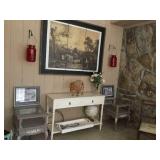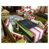 Items available for sale: Bennington triton boat with Yamaha four stroke 200 HP engine, 2 yrs old. Barn Items: Kubota LA 211-2 tractor 4 wheel drive with 60" mower deck & front end loader New box scrape 3 pt. hitch harrow, 3 pt. hitch pivoting grader blade 3 pt. hitch boom Metal plate Coleman outfitters #1 canoe Red Arctic Cat 400 four wheeler Green Arctic Cat 375 four wheeler Dinli 90CC yellow four wheeler 8 fireman hose 25 ft each 99 gallon gasoline tank with manual pump Roll chain link fence 1/2" plywood- many sheets Orange barricade fencing 5 X 8 Allstate open trailer with drop gate 3 X 5 yard tractor dump trailer 2 deer feeders Pair of metal loading ramps Scaffolding, 7 bucks Two metal doors, one wood door Lumber Two wheel barrows Furniture: over 200 pieces Pair dark gray Motioncraft recliners with ottoman for iPad or computer hook up Red three drawer cabinet with pine varnished top Heritage Henredon black round center table with metal filigree edging Two piece wall unit for extra large flat screen TV Pair round metal end tables Pair of cream with the red windowpane club chairs One drawer white center table White vanity bench Dark blue farm table Set of three caned bottom dining chairs Antique apple ladder Small green Trestle table with two Church style benches Antique cream turned leg table with two chairs Green wood small table Pair grey Big Quilt Star 8 x 10 wool area rugs Queen Anne style beveled glass lighted display cabinet Set of four upholstered wood barstools Large pine trestle dining table with bench and cream upholstered love-seat by Paula Dean Pair rush bottom armchairs Pair beige wing back chairs Schnadig Home Collection rounded front marble top cabinet Two wood floor lamps Pair Tall white three drawer bedside table Pair of full size teal caned back wood headboard with new padded mattress & box springs Pair cream tufted wood slat benches Alan White Cream overstuffed sofa Small hall tree with mirror Pair of barstools with beige upholstery/stripe sides Dark bar with marble top with inside interior cabinets and wine rack 7'7" X 10'6" cream design area rug Legacy billiards pool table 8 foot table with Olhausen ping pong, Route 66 pool cue rack, 7 cues, 2 sets pool balls Bar height metal table with three stools Pair white washed pine end tables with metal supports Set 4 upholstered wood bar stools Super Star arcade game featuring Mrs. Pac-Man, Centipede, Galaga, Jumping Jack, Kong Bong, 1943 Kai, Pac Man Plus, Donkey Kong, featuring 60 different games Cream three drawer painted chest of drawers Laurel tree trunk ladder White crisscross end wood shelves Beige Parsons chair Hot pink and white metal shelving unit Antique Painted magazine holder Cream two drawer entry table Crown and Cork company old wood box Black bookcase headboard platform queen bed with drawers & pillow top mattress Antique black iron bed with full mattress/ box springs Rounded top antique painted trunk Pair cream one drawer end tables Pair dark pink padded Queen headboards- new in box Cream 3 drawer chest X-Large ornate mirror Straight canopy rush panel king size bed Round rustic center table with twisted formed pedestal base Broyhill brown sofa, like new Pair soft teal ottomans Miles Talbott club chair Wood twin size day bed with 7 pillows Pair Fairmont end tables Pair metal lamps with bird accents Pair white/ wood benches Heavy silver pole hat/coat rack Wicker under the bed storage unit French slipper chair with plaid upholstery as is Needlepoint mahogany side chair Pair of glass top painted French end tables Black narrow wood cabinet Appliances: Kenmore white washer and dryer Kenmore white upright freezer Kenmore cream side-by-side refrigerator/freezer Garage: Set of three rush bottom ladder back bar stools 3 nice doctor exam tables with burgundy upholstery with dark wood bottoms Air hockey table Trampoline with pads & net Roll around cart 5 drawer wood chest Porch: Pair bronze metal bounce chairs with red cushions Matching round glass top table Pair navy soft cushion Ottomans Wood garden bridge Rope rectangular porch swing with cushion Small wood table with two chairs Wood Picnic table 7 small wood slat tables 4 Cracker Barrel rush bottom oak rocking chairs Five colorful metal cylinder tables Wood slat bench as is Expanded Metal bench & table Pair wood arm chairs with thick cushions Pair leather folding stools 4 outdoor rocking chairs, beige cushion ottoman Pair heavy metal deck stools Heavy white deck end table that holds an umbrella Three x-heavy burgundy Adirondack chairs and matching stools 4 white Adirondack chairs with heavy burgundy stools U shaped wicker outdoor sofa with brown cushions and center table Serving cart that folds out into a table with six folding wood chairs with cover Pair wood pool loungers with pull out slides and cushions Eight metal pool loungers with red cushions More Furniture: Painted blue cabinet bookcase Pair queen matching beds with like new padded mattresses/ box springs End table with I-pad plugs inside Old hand quilted wing chair with wicker ottoman 6 drawer cream chest with positive words White bunk beds with full size mattresses top & bottom plus ladder Metal planter on stand Round plastic barrel end table Miscellaneous: Many life jackets in all sizes Chest waiters 10 ft metal stock ladder World globe Holiday decorations including Halloween, Easter, Christmas, valentines Gym weights Pig collection Large collection of tin and wood signs Lots of kitchen items 8 ft Werner fiberglass ladder Fishing reel & rods, tackle Smoker & grill Front of antique Coca Cola ice box Pro-Form Endurance 520E stair stepper Yard tools, hand tools, power tools, bench grinder Several gas & diesel cans 2 Bounty Hunter pioneer 202 metal detectors Lots of 45's records Huge amount of chaise lounge cushions, decorative pillows, umbrellas with metal stands, Swimming pool badminton game Medium animal trap cage Large animal kennel 3 x 6 inch cream Ritten Square ceramic tiles 7 boxes with in 100 each