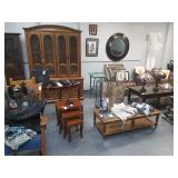 FULL CATALOG Ammo, Knives, WWll Holster, Saber, Fenton, Nippon, Jewelry...TIFFANY, Furniture, Original Art Work, Native American Pottery, Figurines, Stautes, Waterford, Westland Figurines, Westerm Saddle, Tools,Wedding Gown and much more We do take phone bids please call for details For all shipping needs please The UPS Store down the street from us 972-980-7758 We also have a fantastic consession bar Online bidding available from our website. Click here to go to our home page. CATALOG TEXT BELOW: 1 - 2 PIECE ORNATE CHINA CABINET 62 5"x16.5"x83.5" 2 - TIN & WOOD MANTLE 93"wide 3 - GORGEOUS HOWARD MILLER GRANDFATHER CLOCK MODEL# 610-742 SERIAL# F0000120138 WINDSOR CHERRY FINISH 4 - ANTIQUE COAT RACK 5 - LOT 3 VTG WESTERN HATS see photos for makers and size 6 - VICTORIAN OUTDOOR SCENE TAPESTRY ON EXTENDABLE ROD 7 - SOLID WOOD VTG OCCASIONAL TABLE 24"R 26"H 8 - BLACK WITH RED ACCENT DISPLAY CABINET 35 5"x15x28.5" 9 - LOT 10K PLATED NECKLACE AND MATCHING EARRINGS LARGE CLEAR TOURMALINE STONES AND MARCASITE STONES 10 - BEAUTIFUL STERLING RING WITH BLUE HEART SHAPE STONES 11 - STERLING RING WITH APPLE GREEN RING 12 - STERLING RING WITH RUBY COLORED STONE 13 - SHORTER AND SON BEEFEATER TOBY JUG 14 - HANDBLOWN LARGE GLASS VASE 15 - MID CENTURY BRASS CALENDAR HAND MADE AND PAINTED 16 - BLACK AND BRASS SWORD CANE 17 - FIRE CHIEF VTG TIN TEXACO SIGN 18 - DUMMY GRENADE GREAT DESK ORNAMENT 19 - POWER LINE 1200 & AIR SOFT BB GUN 20 - DAISY POWER LINE 856 BB GUN WITH BBs 21 - GOLF SET 22 - LOT BUFFALO NICKELS 23 - LARGE LOT OF NUMEROUS AMERICAN & FOREIGN COINS 24 - COSTUME MADE CHARM BRACELET SOME PIECES ARE STERLING 25 - VTG INOX GAUCHO DAGGER BOOT KNIFE WITH SHEATH VERY NICE 26 - 1942 16mm FILM " THE SPOILER" with JOHN WAYNE 2 SPOOL SET 27 - SIGNED MATS JONASSON WALKING MOOSE CRYSTAL PAPERWEIGHT with label and box 28 - "SHOELESS JOE JACKSON'' by ALLEN FRIEDLANDER 29 - VTG 10 cent PUNCH BOARD HORSE RACING & EAGLES TRADE SIMULATOR 5000 PUNCH 30 - ANTIQUE SILVER ON COPPER NUT DISH MOUNTAIN CABIN THEME 31 - ANTIQUE 19c ROCKINGHAM YELLOW WATE PIE PLATE 32 - ERV JOHNSON SOUTHWESTERN HOPI VASE PAINTING ON SUEDE 33 - BEAUTIFUL LARGE CIRCLE FRAME BEVELED MIRROR 34 - STERLING SILVER SLIDE & HANGING BEAD LEATHER NECKLACE 35 - APOLLO Vll BRONZE/COPPER CHALLENGE COIN 36 - DENDRITIC OPAL 37 - DENDRITIC OPAL 38 - DENDRITIC OPAL 39 - LARGE MID CENTURY BRASS PUNCH BOWL WITH SPOON, SERVER AND MATCHING CUPS 40 - PORCELAIN ASHLEY BELLE ASIAN DOLL 41 - BEAUTIFUL PORCELAIN DOLL MARKED JM 42 - MURANO HANDBLOWN BOWL 43 - LOT CRYSTAL WATERFORD SMALL BOWL AND MARQUIS CRYSTAL FIGURINES 44 - CRYSTAL DECANTER 45 - WATERFORD STAR ORNAMENT 46 - WATERFORD SNOWFLAKE ORNAMENT 47 - WATERFORD CRYSTAL ORNAMENT 48 - LOT 3 WATERFORD CRYSTAL ORNAMENT 49 - LOT MINI CRYSTAL DECORATIVE LOT PIECES 50 - TIFFANY & Co CRYSTAL PAPERWEIGHT 51 - DIESEL STAINLESS STEEL WATCH DZ-4209 52 - DANIEL LOTTON SIGNED ART GLASS LAMP 53 - LLADRO 2012 BOLA ORNAMENT NEW IN BOX 54 - MARSHALL HORN STATUE LIMITED EDITION SIGNED LARGO 55 - FATHER & SON STATUE 56 - HAND CARVED AFRICAN SCULPTURES 57 - BEAUTIFUL TIARA 58 - ROYAL DOULTON "NINETTE" 59 - ROYAL DOULTON "BLITHE MORNING" 60 - ROYAL DOULTON "JENNIFER" 61 - AMAZING STERLING EARRINGS WITH CRYSTAL & CLEAR TOURMALINE STONES pierced pictures do not do these earrings justice 62 - BEAUTIFUL HAND MADE AND PAINTED PORCELAIN PLANTER SIGNED BT ARTIST 63 - LARGE GRAYISH SLEEPER SOFA 64 - BEAUTIFUL WICKER SOFA 65 - WICKER CHAIR 66 - WICKER BASE COFFEE TABLE WITH GLASS TOP 67 - WICKER SIDE TABLE WITH GLASS TOP 68 - RATTAN STYLE BAMBOO SWIVEL CHAIR ON CASTERS 69 - RATTAN STYLE BAMBOO SWIVEL CHAIR ON CASTERS 70 - RATTAN STYLE BAMBOO SWIVEL CHAIR ON CASTERS 71 - RATTAN STYLE BAMBOO SWIVEL CHAIR ON CASTERS 72 - KEEP TEXAS BEAUTIFUL WITH ORIGINAL BOX 73 - RATTAN STYLE NOOK TABLE 74 - RATTAN STYLE SIDE TABLE 75 - LOT OFRA BLACK OFFICE CHAIRS 76 - TITAN BROWN LEATHER SOFA WITH END RECLINERS 77 - TITAN BROWN LEATHER RECLINER 78 - OVERSIZED LANE RECLINER 79 - VTG SIDE TABLE WITH STORAGE AND BRASS HANDLES 80 - SIDE TABLE WITH SHELL SHAPE FEET 81 - BEAUTIFUL VTG OAK DROP LEAF TEA CART WITH DRAWER 82 - LEGEGN GLOBE LAMP 83 - RSQ MKP2000 MP3+3 KARAOKE 84 - TURN OF THE CENTURY STYLE OAK BABY ROCKING BED 85 - TARKOS PORCELAIN "PAUL" BABY 86 - LOT 3 PORCELAIN DOLLS 87 - FAUX LEATHER "X" BASE STOOL 88 - OCTAGON BEVELED MIRROR OCCASIONAL TABLE 89 - SHABBY CHIC BENCH OAK TOP 90 - HALF MOON CHERRY ENTRYWAY TABLE 91 - SHERRILL OCCASIONAL SIDE TABLE 92 - HEALTH O METER DOCTORS SCALE MODEL 230 93 - BEAUTIFUL OCCASIONAL TABLE WITH MARBLE TOP 94 - VTG QUEEN ANNE STYLE NESTING TABLES 95 - BEAUTIFUL NESTING TABLES 96 - LOWBOY MEDIA STAND 97 - MID CENTURY SIDE TABLE 98 - VTG OAK PORT-A-CRIB 99 - BERNHARDT BARREL CHAIR 100 - BERNHARDT BARREL CHAIRS 101 - FLORAL UPHOLSTERED OCCASIONAL ARM CHAIR 102 - MAGNAVOX ASTRO SONIC CABINET 103 - BEAUTIFUL SOLID INLAYED CREDENZA 104 - AMERICAN OF MARTINSVILLE 2 PIECE CHINA CABINET 105 - GLASS DOME DISPLAY WITH OAK BASE 106 - AZTEC PREACHER HAND TOOL STONE 107 - LIMOGES 3 SERVING DISH 108 - VTG SOVIET FISH DECANTER AND MATCHING CUPS 109 - LOT 2 BISQUE PORCELAIN FISHERMEN CARRYING YOLK 110 - MISS CHINA "THE WONDERFUL WORLD OF EFFANBER DOLLS" WITH STAND 111 - LOT PAIR PORCELAIN STATUE MADE IN ITALY 112 - MID CENTURY METAL CANDLE WALL HANGING 113 - VTG COFFEE TABLE WITH 2 BEVEL GLASS TOPS 114 - POP UP COFFEE TABLE BY COASTER FINE FURNITURE 115 - ANTIQUE OAK LARGE ROCKING CHAIR 116 - BLACK MESH FIREPLACE 117 - THOMASVILLE 2 PIECE CHINA CABINET 118 - LOT 3 PIECE FRAMED PRINTS 119 - NEW 7'x10' IVORY NAVY CENTO RUG 120 - SOLID SIDE TABLE WITH DRAWER AND STORAGE BY RIVERSIDE 121 - CHAIR SIDE TABLE 122 - 26" VIZIO TV WITH REMOTE 123 - UNION PACIFIC R R. BRASS SPITTOON 124 - MARTHA WASHINGTON SEWING CABINET GREAT CONDITION 125 - SMALL JEWELRY BOX 126 - VTG RWP PEWTER FRUIT BOWL 127 - HAND CARVED SHAN MU BASKET more info in photos 128 - HOOKER CHERRY LATERAL FILING CABINET with key 129 - VTG MAPLE DISPLAY CABINET 130 - YOUNG R