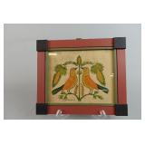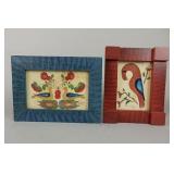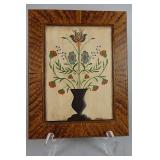 2 piece colorful Joseph Lehn Saffron Cup, Folk Art items including Garrett French watercolors, B. Mest & DeVerter Theorems, Barbara Strawser watercolors, Redware pottery including Breininger, Foltz, James Christian Seagreaves, Jeff Dietrich, David Salks and Zellner, etc.