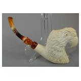9 Modern Meerschaum pipes including Kangaroo and Joey, full body Eagle, Hunting dogs with game bird, head of bear, head of lion, head of ram, head of dog, etc.