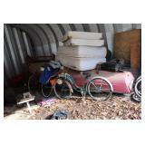 Tools Trash pump 2in central machinery Maximat 7 Lathe Shovels, rakes, other hand tools Gas cans Tool boxes Black and decker power tools Vice Engine hoist Table saw Router Scroll saw Knipe turbo heater Sprayers Engine hoist Air compressor Hobart welder Power pro 5500 generators