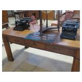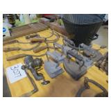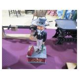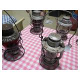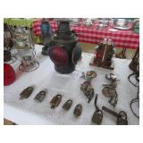 Railroad lanterns, swithsc light, railroad locks, antique furniture, dining setrs, hutchs oak pedestal table, Remington knives, other pocker knives, vintage cap guns. lead soldiers, tootsie toy cars, pottery, violins, banjo. jewelry, art deco brass bookends, Robert Mitchell slant top desk, plantation large desk, windsor back chairs, Neon Miller lite clover Irish sign,wooden boxes some primitive, other primitive tools and things, Jukebox AMI works fine, vintage medical microscopes, steins, Guardianware , nice selection of cast iron, mustache mugs, toby mugs, retro leather bar with stools, artwork, corner cabinet and so much more. way to much to list for this combination of two estates at auction |