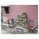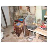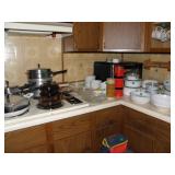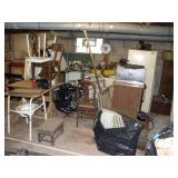 Contents include: sofa, chairs, kitchen table/chairs, drop leaf table /chairs, china cabinet, several barrister bookcases, corner curio cabinet, coffee table, end tables, lamps, chests, dressers, desks, refirgerator, microwave, small electronics, washer/dryer, cedar chest, storage bins, misc glassware, kitchen items, vintage Corning, tin cabinets, record cabinet, tools, landscaping block, costume jewelry, and more! Basement full of intersteting things for the picker!
