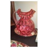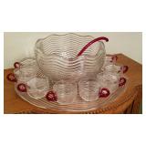 1930's Duncan Miller "Caribbean" CRANBERRY Punch Bowl Set