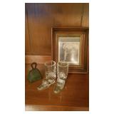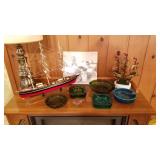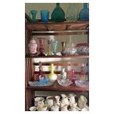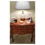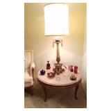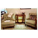 Small ANTIQUE lighted Curio Cabinet w/ etched Glass