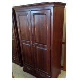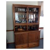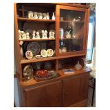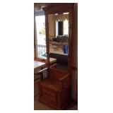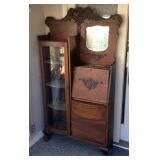 ANTIQUES Secretary with Curio on left side and drop down desk on right side Tall Eastlake style Hall Tree with mirrored back and bench seat