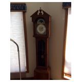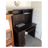 Grandmother Clock Glass door Barrister Bookcase 2 Desks, including 1 computer desk White wicker seating Numerous small furniture items