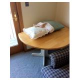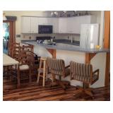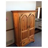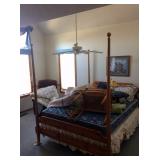 INCLUDES: (also see revised photos) FURNITURE Livingroom sofa, loveseat, and leather recliner Blue 3 cushion sofa Coffee table with table top you can raise End tables and lamps Hand made China Buffet Pine high 4 Poster Bed Pine 2 Door Armoire Pine 2 door cabinet Round wood drop leaf table with white painted base and matching chairs 2 hand made chests of drawers