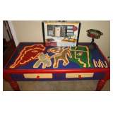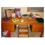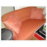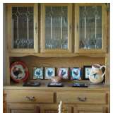 Furniture "White Clad" oak end table (2), phone stand and coffee table Papasan Chair and Ottoman Viewpoint Leather Works (VLW) Sofa Couch Bookshelves La-Z-Boy Rocker/Recliner with massage Rolling Microwave Cart Lighted Oak Hutch Oak Dining Table w/ matching 4 chairs, one leaf and pad 3 pc matching living room set with - coffee table, side table and sofa table Wood with rod iron legs Futon