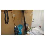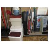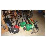 Garage Tools Yard/lawn tools Craftsman 18in Gas Chainsaw "Skil" Hand Saw Thor X Spotlight Black and Decker Trimmer (2) Troy Built 27cc weed eater Poulan Prow Gas Lawnmower Bike Rack Golf Clubs
