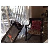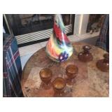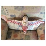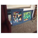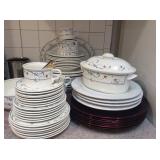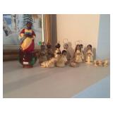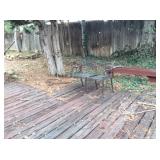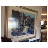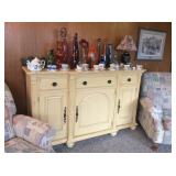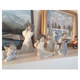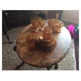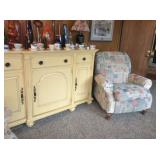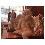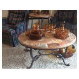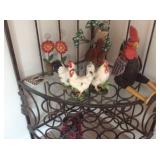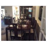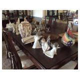 Bikes Leather Couch Lazy Boy fabric recliners Buffet Walnut dining table with 6 chairs Walnut matching hutch Blown glass Llardro figurines Angles Vases Walnut cabinet with stone top Candlesticks Plaid chairs Iron tables Fabric matching chairs |