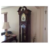 Great home with very nice dining room set, leather couches and grandfather clock.