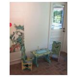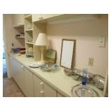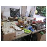 Minton Ancestral China, leather loveseat, vanity & mirror, rocker, sleep number queen bed, lamps, pictures, Chappelle pottery, ladder chair, leather bar stools, vintage wall lamps, vintage marble top cabinet, paper weights, needle point chairs, mirrors, feather lite sewing machine, TV, linens, pillows, books, full kitchen, Westinghouse radio receiver & amplifier, Briggs & Stratton generator, salesmen size dresser, Walker Bay boat, grill, ladders, files cabinets, table & stools, Schwinn bike, pot & plants
