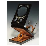A Large Collection Floor and Tabletop Stereoscopes A Collection of Antique Walking Sticks Regina and Other Disk Music Boxes Edison Cylinder Music Boxes Scientific Instruments Antique Clocks including Lemuel Curtis Girandole 'Number Five,' an extremely rare original signed version of the classic girandole banjo clock patented by Curtis in 1816. |