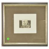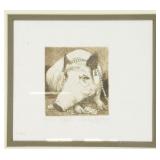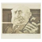 Lot 44. Brad Cox Etching; 20th Century; 8.5 inches x 9.75 inches; pencil signed 35/150 titled Exhibit A, depicting elderly man holding letter A, professionally framed and matted, overall excellent condition; Provenance: Private Yadkinville NC Collection