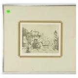 Lot 43. Charlie Bragg Etching; 20th Century; 9 inches x 11 inches; pencil signed 148/300, titled G.P, depicting man with clipboard surrounded by collectibles and antiques, professionally framed and matted, overall excellent condition; Provenance: Private Yadkinville NC Collection