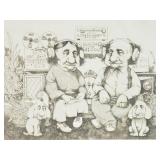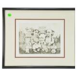 Lot 46. Charlie Bragg Etching; 20th Century; 10.5 inches x 13 inches; pencil signed 282/300, depicting elderly couple listening to hi-fi equipment with dogs, excellent condition; Provenance: Private Yadkinville NC Collection