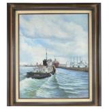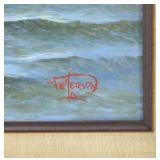 Lot 9. Raymond Dominique Ernandes Sfax Abstract Painting; 20th Century; 12 x 24 inches; acrylic on canvas, signed on reverse artist Sfax 1020915, also signed in pencil on stretcher Raymond Dominique Ernandes, professionally framed, frame has light wear otherwise excellent; Provenance: Private Pinehurst NC Collection