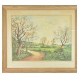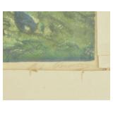 Lot 83. John Warmerdam Dusk in Hills Landscape; 20th Century; 10 x 17 inches oil on board, depicting mountain landscape in pastel colors, signed JW74 lower right, has Torrence Gallery Edinburgh labels on reverse titled Dusk in Hills, professionally framed overall excellent condition; Provenance: Private NC Collection