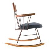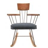 Lot 3. Arthur Umanoff Iron and Oak Armchair Rocker; 20th Century; 31 inches height, 23.5 inches width, 29 inches depth; iron frame, with oak arm rest, head rest, and rockers, has original cushion but has recently be recovered, has light wear to finish otherwise excellent; Provenance: Recently Discovered by NC Picker