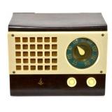 Lot 41. Emerson Radio; 1940s; 8.75 inches height, 11 inches width, 6.5 inches depth; tortoise shell catalin cabinet with original patina, chasse has been electrically restored, electronics are in playing condition, overall excellent condition; Provenance: Private Mebane NC Collection