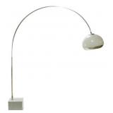 Lot 4. Harvey Guzzini for Laurel Lighting Co. Arc Lamp; 20th Century; 82 inches height; 5 foot fully extended; square marble base with chrome adjustable arm, plastic and chrome dome shade, foot pedal switch, working condition when cataloged, plastic shade has slight scuffs, chrome reflector has light dent and small scuffs, marble base has small chip on one corner otherwise excellent; Provenance: Private Lake Gaston Collection