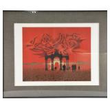 Lot 6. Gaston Bogaert Belgium Surrealist Signed Lithograph Menaces; 20th Century; 21.5 x 29 inches; limited edition pencil signed lithograph, depicting classical arches with gentlemen in top hats staring at red sky signed E.A. for Artist Edition, hand titled Menaces artist signed lower right, professionally framed and matted, accompanied by two gallery catalogs Terre D’Europe Gaston Bogaert and Bogaert by Raymond Lacroix, overall excellent condition; Provenance: Private Winston Salem NC Estate Collection