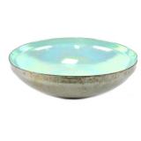 Lot 7. Dorothy Thorpe California Enameled Silver Bowl; 20th Century; 4 inches height, 18.5 inches diameter; enameled center piece bowl with silver metallic plate on exterior, interior has blue iridescence enameling, has original Dorothy C. Thorpe Inc. California label, light chipping and rust on outer edge, otherwise excellent; Provenance: Private Virginia Collection
