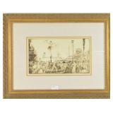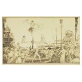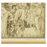 Lot 12. William Russell Flint Drypoint Acrobats Lorca Fair; 20th Century; 8.25 x 14 inches; limited edition and pencil signed LVIII, has artist info on reverse, was sold at Bonham 2010, professionally framed and matted in gold guilt frame, in overall excellent condition; Provenance: