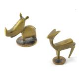 Lot 13. Karl Hagenauer Wein Austrian Bronze Animals; 20th Century; group of (2) to include: 1.75 inches height deer and 1.75 inch rhino; both signed with maker stamp Hagenauer Wein handmade made in Austria, both have original patina overall excellent condition; Provenance: Private Winston Salem NC Collection