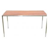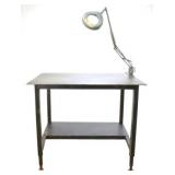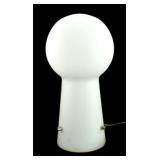 Lot 16. Swedish Frosted Glass Table Lamp; 20th Century; 14 inches height, approx. 7 inch diameter dome top, Swedish design possibly for Laura Lamp Co., molded frosted milk glass with stainless steel mounts in working condition, has glue residue on base otherwise excellent; Provenance: Recently Discovered by NC Picker