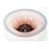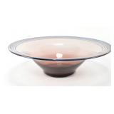 Lot 19. W. H. Blenko 1988 WV Birthday Art Glass Threaded Centerpiece Bowl; 20th Century; 4.75 inches height, 17 inches diameter; amethyst center piece bowl with blue threaded edge, signed W.H. Blenko 88, overall condition is excellent; Provenance: Recently Discovered by NC Picker