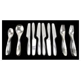 Lot 21. Lauffer Finland Design 9 Stainless Flatware; 20th Century; 33 pieces to include: (7) 7 inch table spoons, (7) 6 inch tea spoons, (6) 8 inch dinner knives, (7) 7.5 inch salad forks, (7) 7 inch dinner forks, all signed Lauffer Finland, all have scratches from use otherwise excellent condition; Provenance; Recently Discovered by NC Picker