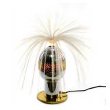 Lot 22. Fantasia Chrome and Brass Fiber Optic Motion Lamp; 20th Century; 15 inches height, 13 inches width; brass and chrome base with rotating multi color motion panel and rotating fiber optic plume, original Fantasia Products label, in working condition, overall excellent condition; Private Mebane NC Collection