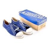 Lot 23. Converse Fast Break II Mens 10 ½ Blue Canvas Shoes in Original Box; 20th Century; original laces, has some red powder residue on insoles, box measures 4 x 13.5 x 4.5 inches, dated 1975 on box, new old stock, has light scuffs, otherwise excellent condition; Provenance; Recently Discovered by NC Picker