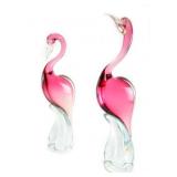 Lot 24. Pair of Murano Italian Art Glass Heron Bird Sculptures; 20th Century; matching pair 22 inches height and 20 inches height; Venetian art glass Heron, pink body and neck with clear base, original foil Made in Italy Murano stickers, overall excellent condition, no chips, cracks, or deep scratches; Provenance: Recently Discovered by NC Picker;