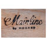 Lot 26. Hooker Mainline Series Roll top Desk; 20th Century; 43 inches height, 48 inches width, 20 inches depth; solid walnut, has C roll desk with tambour sliding door, has white laminate pull out writing surface, with two drawers, below desk is two drawers, on left is a hanging file drawer, type writer drawer, and letter file drawer, signed inside Mainline by Hooker, small crack and reinforcement nail where tambour door meets outer board, light scuffs from use otherwise excellent condition; Provenance; Recently Discovered by NC Picker