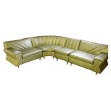 Lot 90. Atomic Mid Century Sectional Sofa; 20th Century; four piece sectional 146 inches length, 29 inches height, 29 inches width; green floral vinyl upholstery made by New Orleans Furniture Mfg., minor wear from use otherwise excellent condition; Provenance: Private Winston Salem NC Collection