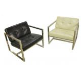 Lot 48. Pair of Chrome and Leather Cube Lounge Chairs; 20th Century; 27 inches height, 28 inches width, 27 inches depth; matching pair, chrome frame, one with white leatherette cushions the other with black leatherette cushions, black cushions have peeling and flaking, both chairs have minor wear from use otherwise excellent; Provenance: Private Lake Gaston Collection