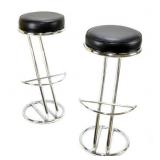 Lot 89. Italian Chrome Z Bar Stools; 20th Century; 33 inches height, 13 inches diameter; matching pair, chrome base with leather seat, light scratches to chrome, leather has minor wear otherwise excellent; Provenance: Private Lake Gaston NC Collection