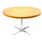 Lot 29. Heywood Wakefield Wishbone Dining Table; 20th Century; 29 inches height, 40 inches length, 78 inches width when extended; solid maple drop leaf dining table with three wishbone legs, two extension leaves, very clean, no deep scratches or scuffs, champagne finish; Provenance: Private Raleigh NC Collection