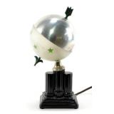 Lot 39. Art Deco Globe Lamp; 20th Century; 11 inches height; 5.5 inches diameter; black amethyst base with frosted glass globe and aluminum shade, working condition, aluminum has minor scruffs otherwise excellent; Provenance; Private NC Collection