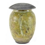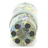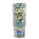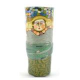 Lot 50. Jane Peiser NC Art Pottery Vase; 20th Century; 7 inches height, 3 inches diameter; conical shape, micro mosaic multi color design with female face in jewelry, green floral band across mid body, hand inscribed Jane Peiser, overall excellent condition; Provenance: Private Hillsborough NC Collection
