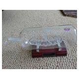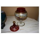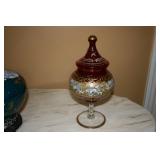 Vintage Ruby Red Glass Bonbonniere w/etched glass Hunting Scene |