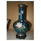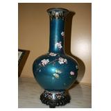 Vintage Asian Cloisonne Vase w/Peacock, Butterfly, Floral |