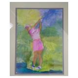 Woman Golfer Signed Framed Original Watercolor Art Piece |