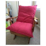 Wooden Vintage Rocking Chair w/ Red Cushions 33" x 30" x 28" |